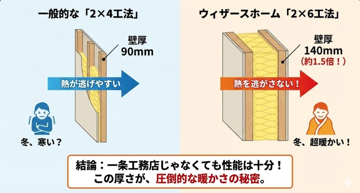 壁が厚いということは、それだけ「断熱材」を分厚く入れられるということ。