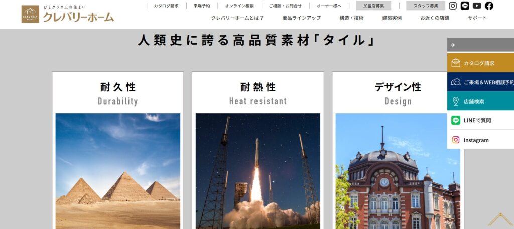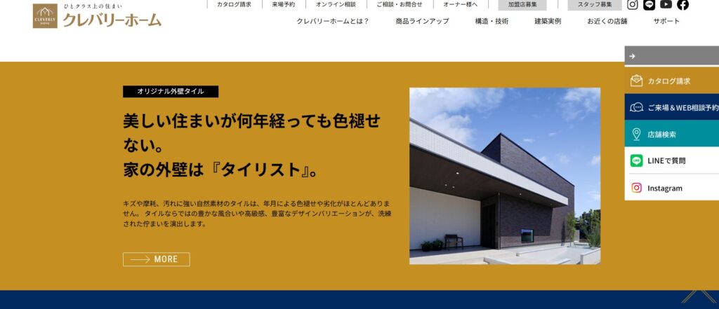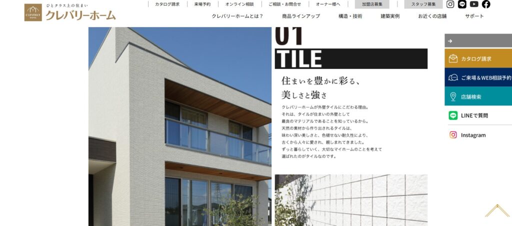 - クレバリーホームは外壁タイル標準仕様で耐久性が高い