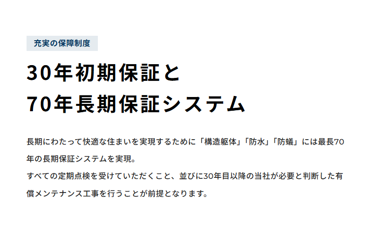 A構造躯体と防水について10年間の保証があり、延長保証の制度も選択可能です。