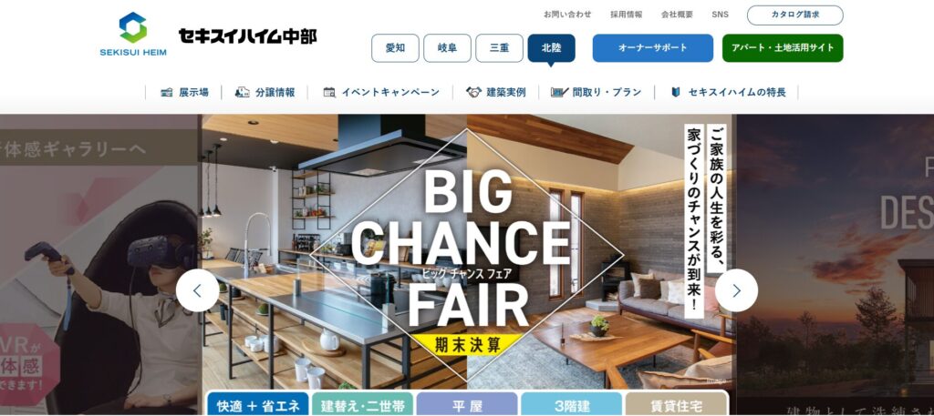 セキスイハイム中部 | 工場品質で断熱性能に強み | 60〜80万円 | ◯ プラン対応可 | 20年+延長可 | 鉄骨ユニット工法 | 富山県内3か所以上 |